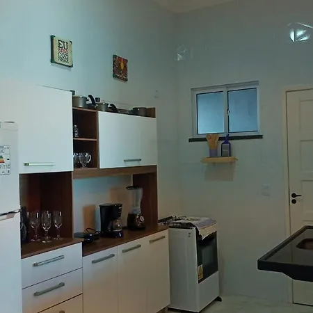 La villa Vida No Paraiso Lagoinha dispose d'une cuisine complète dotée d'une bouilloire électrique, d'un réfrigérateur et d'un four. - ❓